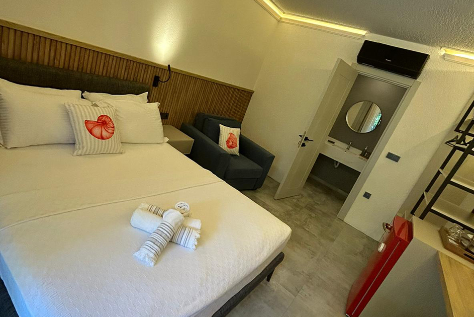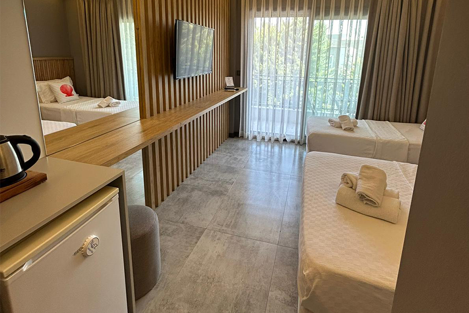 Mavi bayraklı, pırıl pırıl Ege denizi ile çevrili olan işletmemiz, yenilenen konforlu odaları ile misafirlerinin kendini evinde hissedeceği titizlik de bir tatil anlayışı sunuyor.